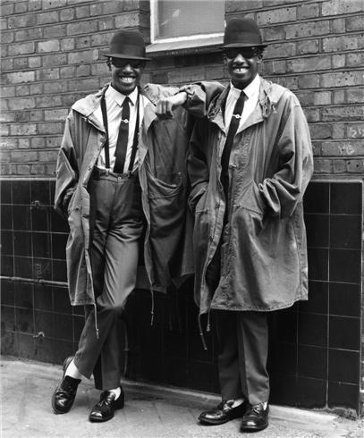 1978 The Mod twins, Chuka and Dubem, aka The Islington Twins, were a fixture around the streets of Islington. They always dressed in identical high style and would hang out at the entrance to the Highbury and Islington tube station entertaining travelers with the latest ska and reggae music from their boom box. They also danced onstage with Madness. This photo was published in the first issue of The Face Magazine and they became London style icons